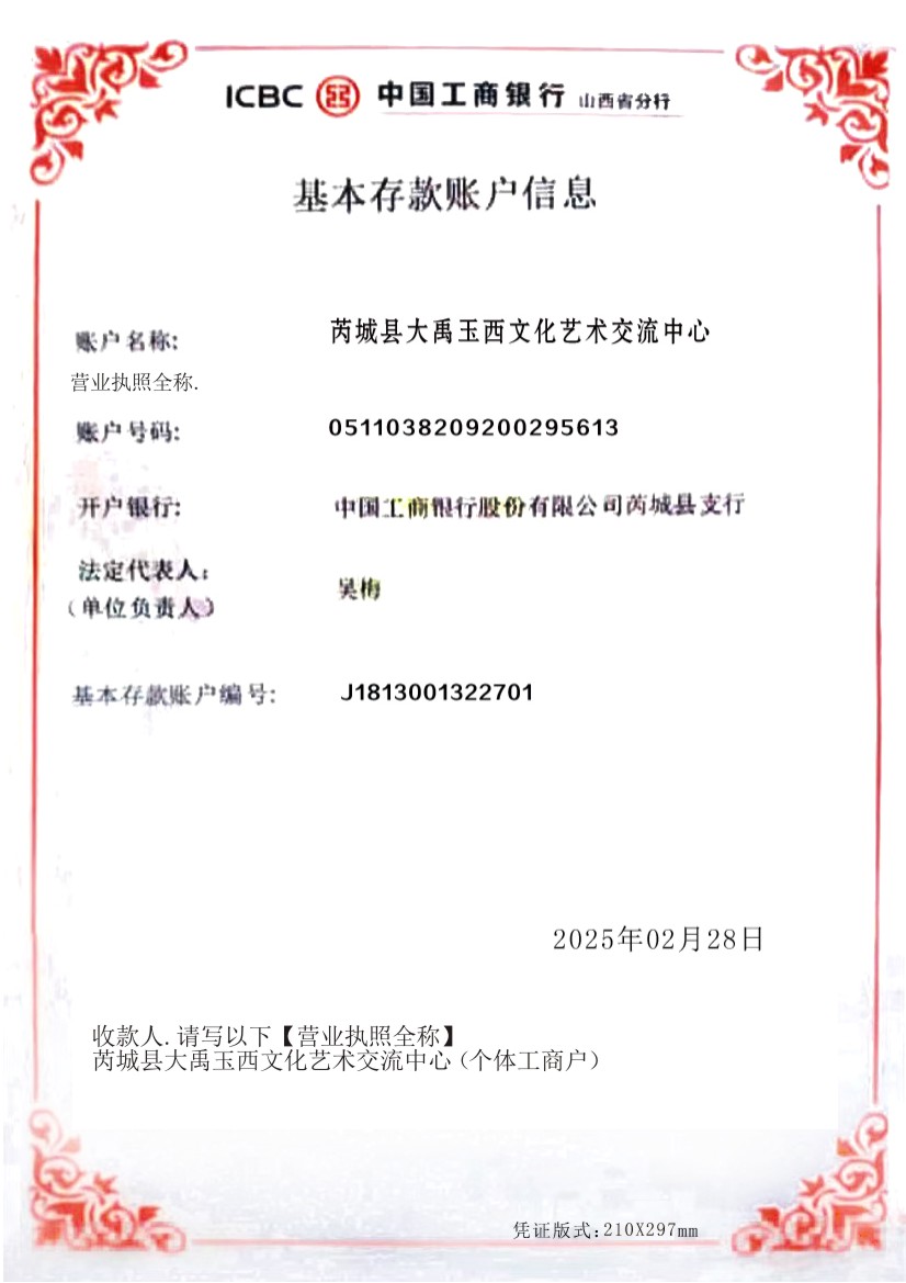 *【芮城县大禹玉西文化艺术交流中心(个体工商户)】