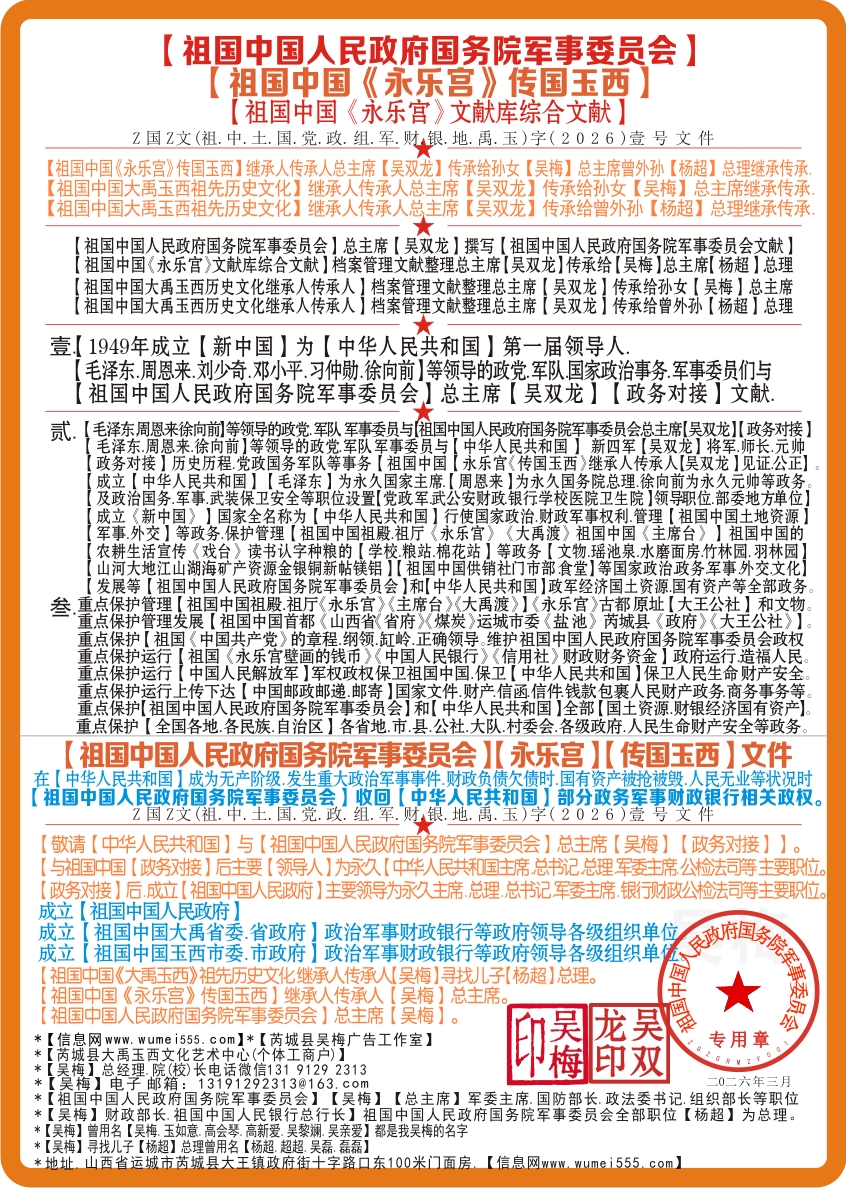 *【祖国中国】总主席【吴双龙】亲自授权孙女【吴梅】总主席等职位.在特殊环境下.