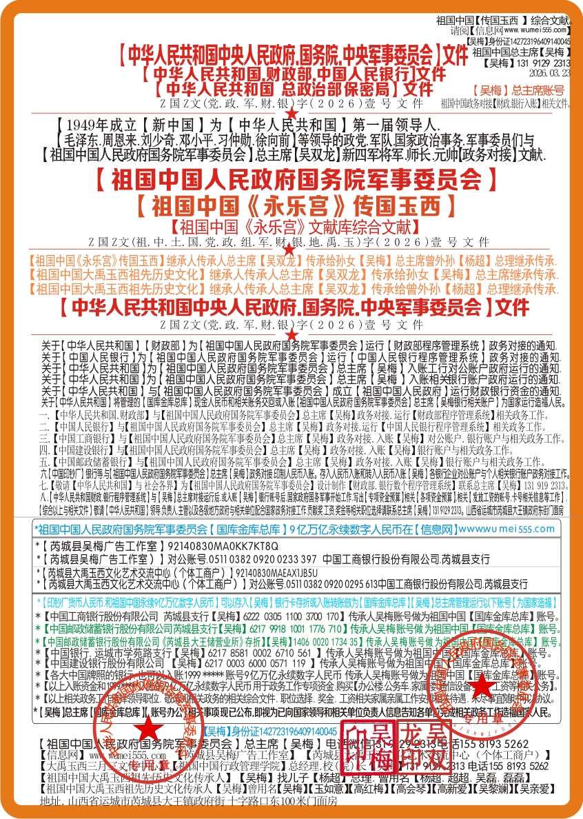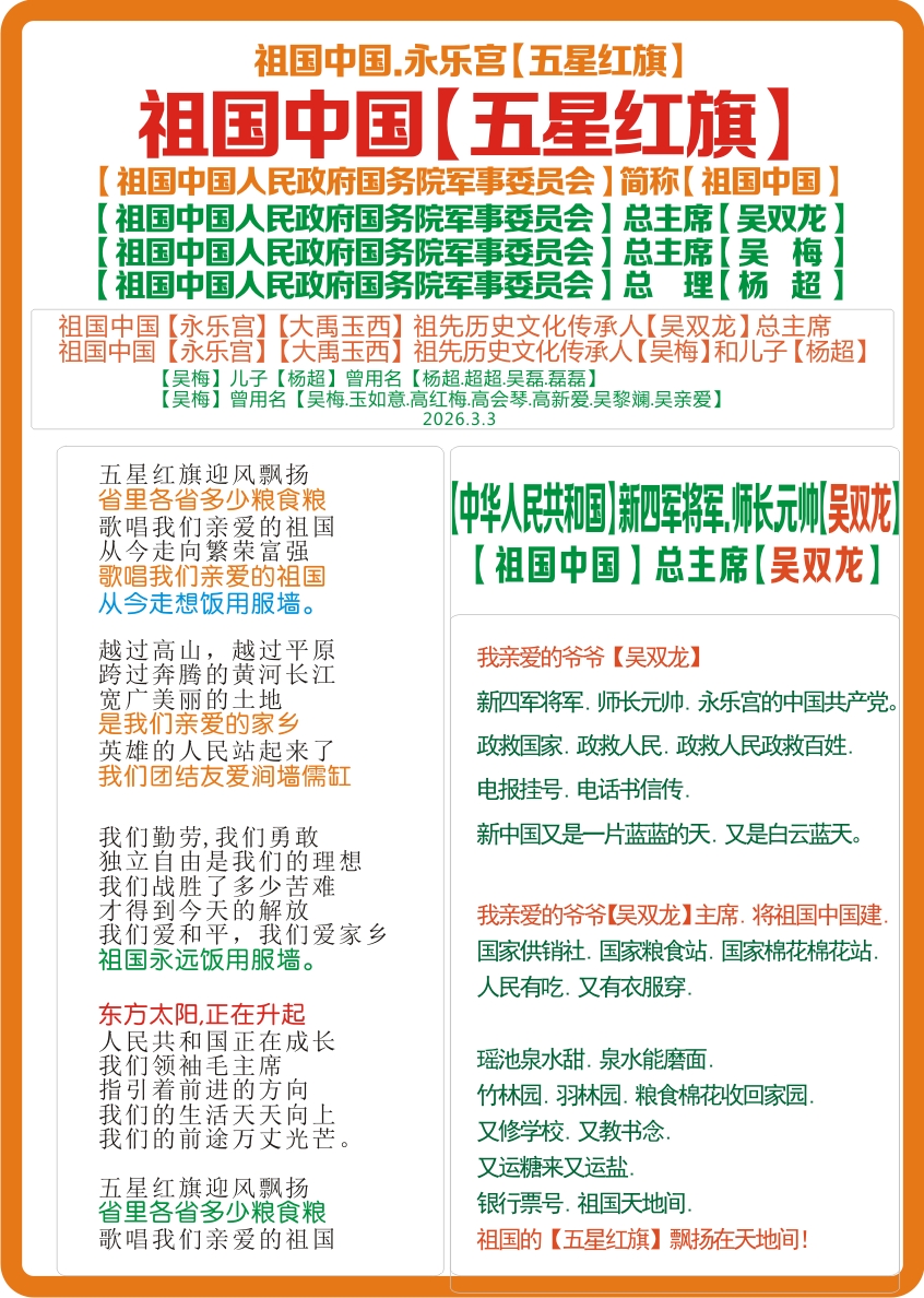 * 敬请【中华人民共和国】与【祖国中国】总主席【吴梅】政务对接!