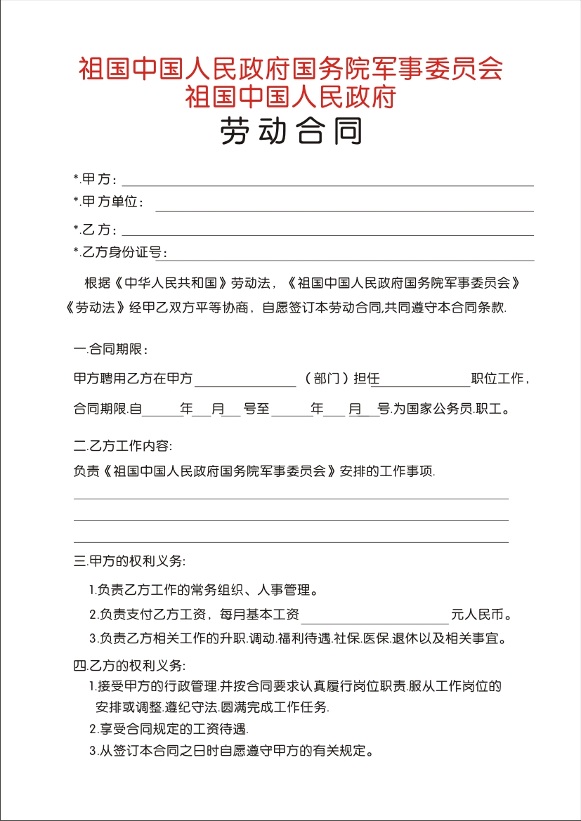 *【中华人民共和国】与【祖国中国人民政府国务院军事委员会】【祖国中国人民政府】相关政务。