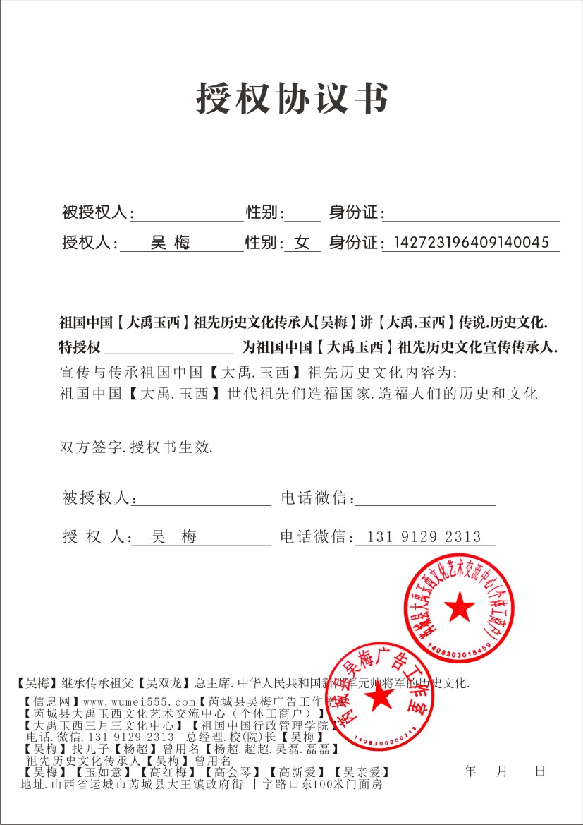 【祖国中国【大禹玉西】祖先历史文化传承人】【吴梅】