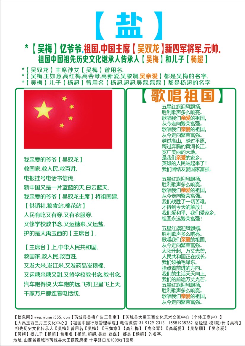 *【祖国中国大禹玉西祖先历史文化继承人传承人】【吴梅】【杨超】.
