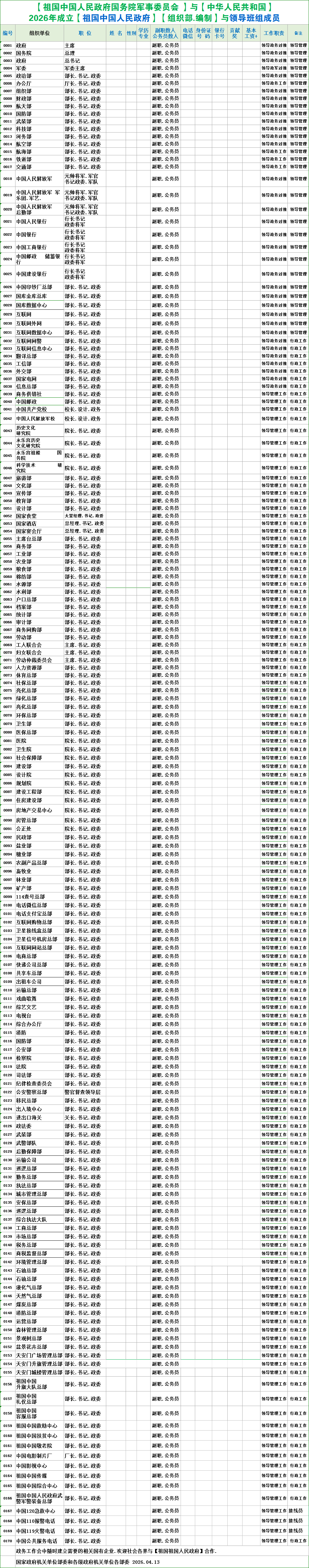 三.【祖国祖国人民政府国务院军事委员会】政府机关单位: