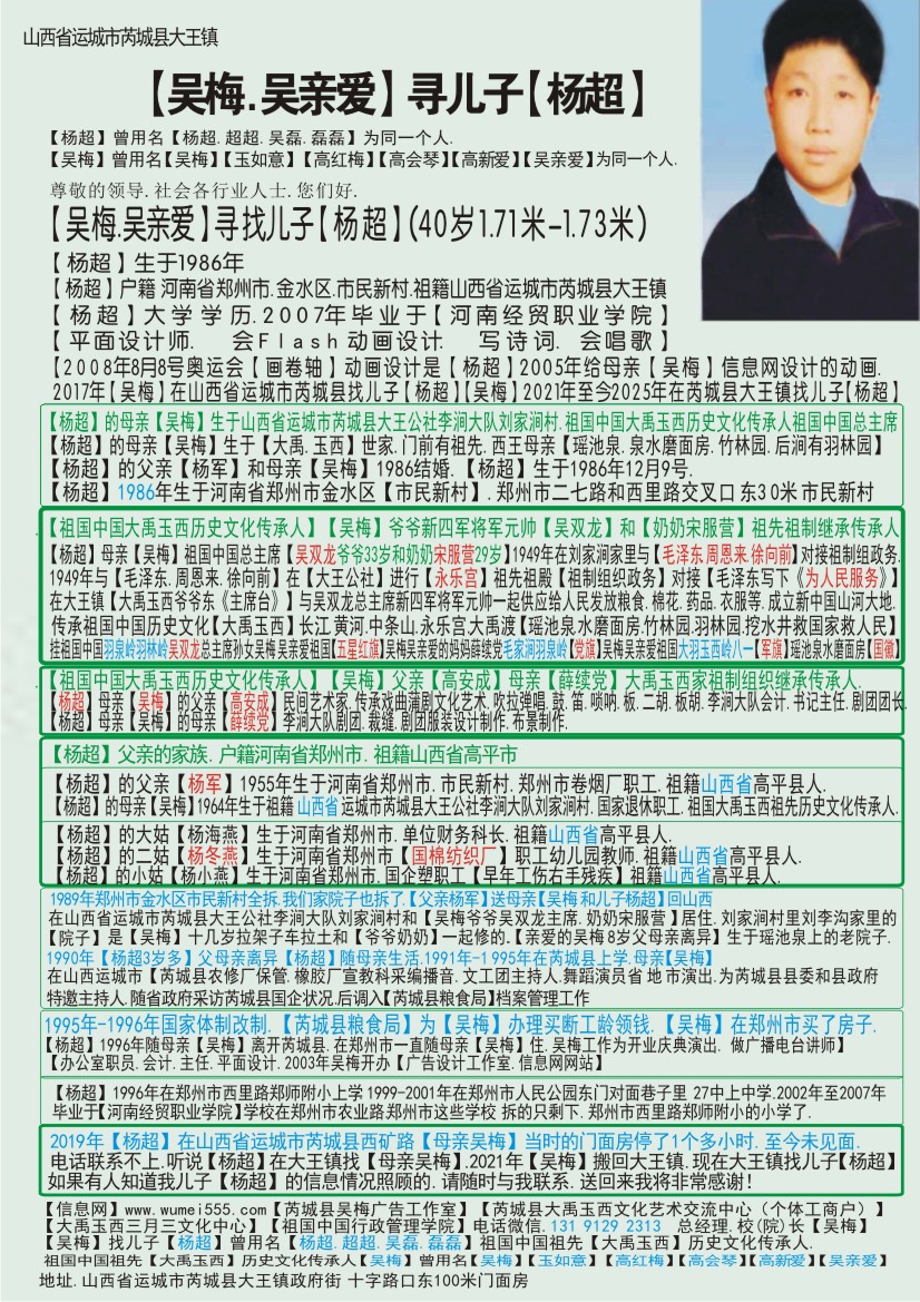 【吴梅】元帅将军2026年61岁.在山西省运城市芮城县大王镇寻找40岁儿子【杨超】