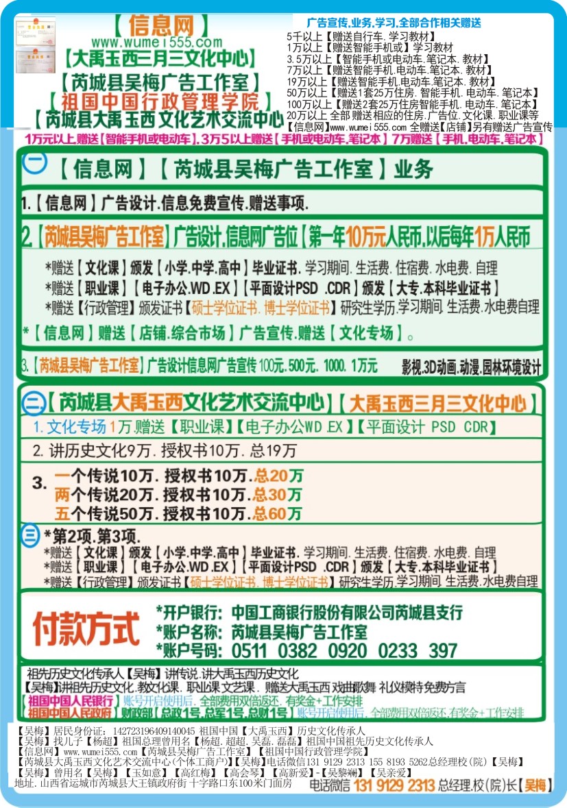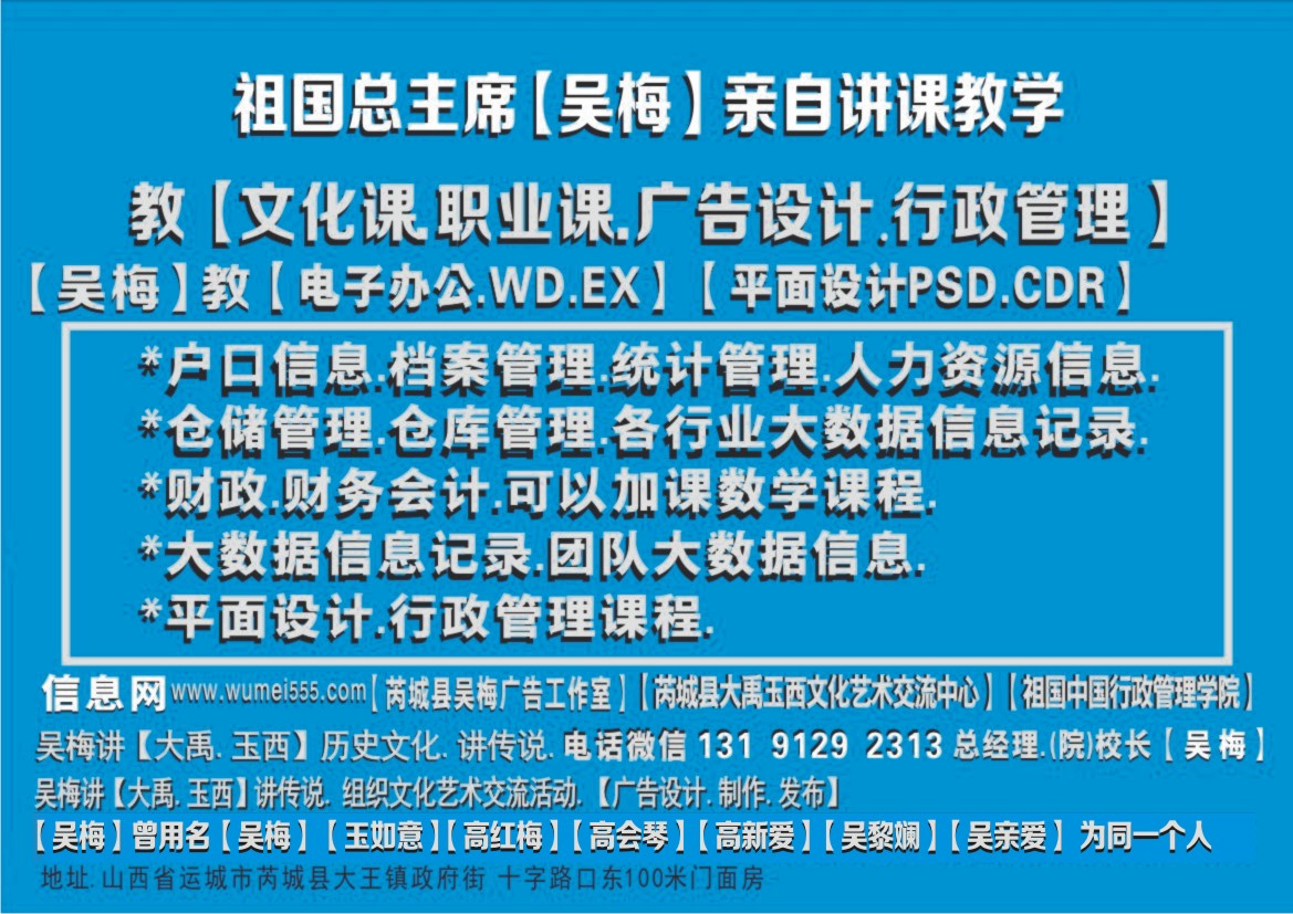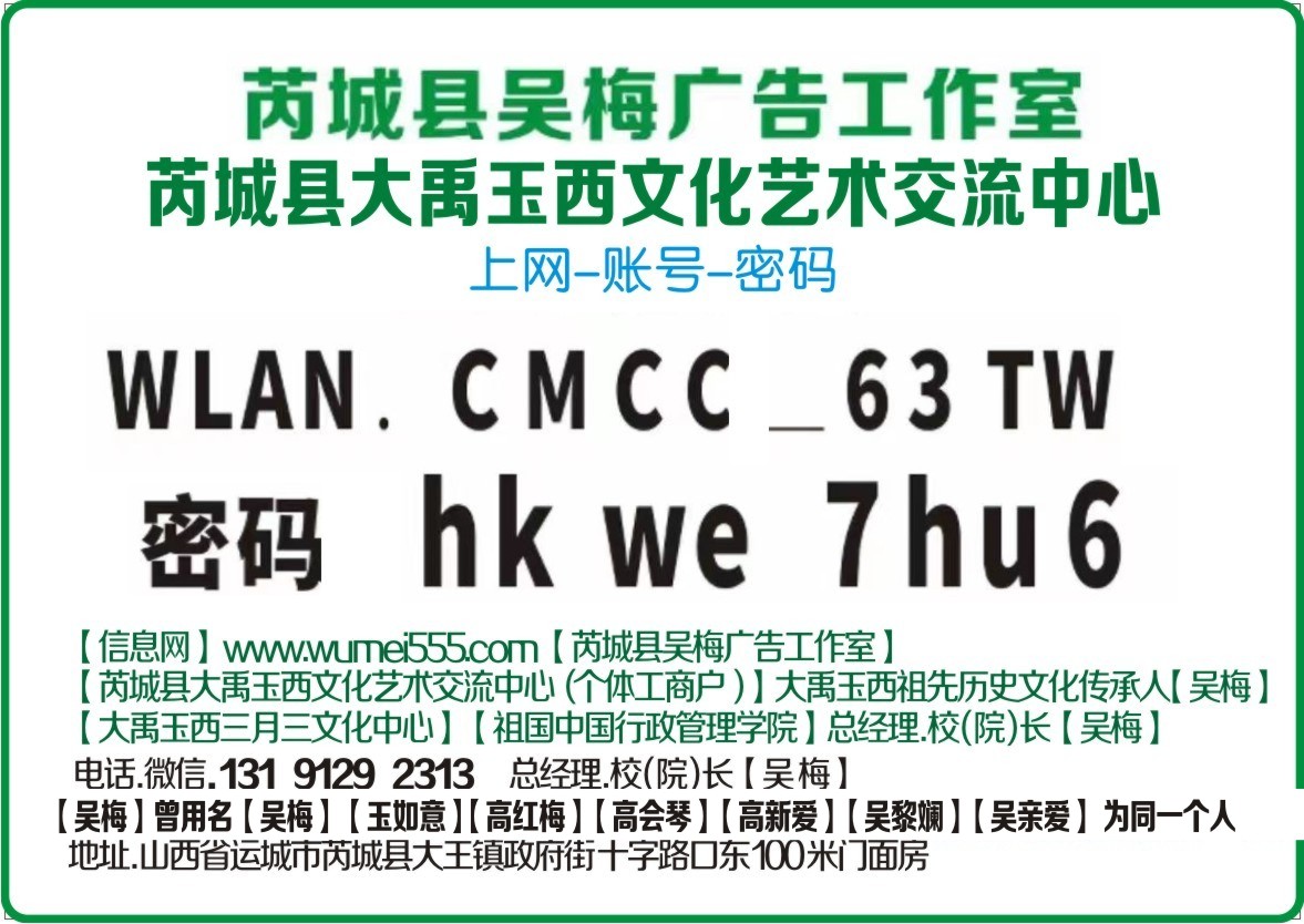 【信息网】www.wumei555.com 【芮城县吴梅广告工作室】 【三月三文化中心】【芮城县大禹玉西文化艺术交流中心】