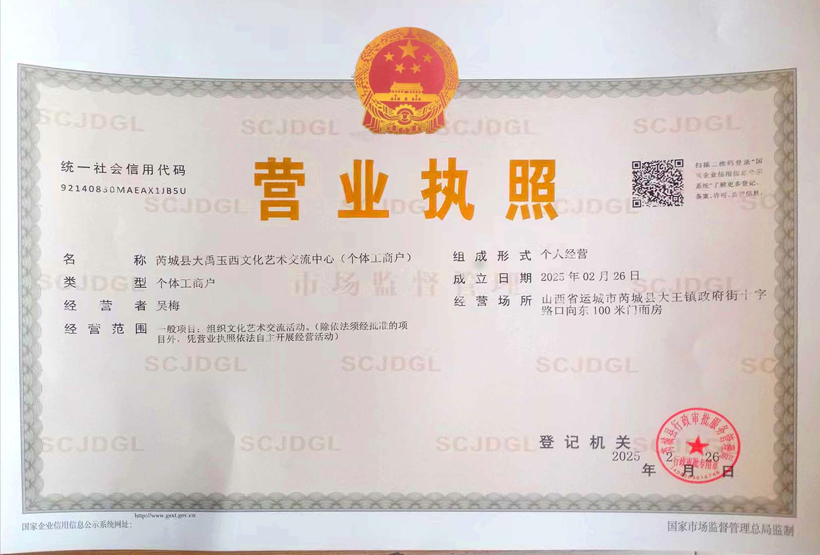 *【芮城县大禹玉西文化艺术交流中心(个体工商户)】