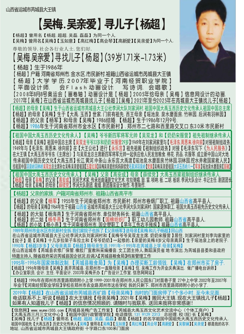 【吴梅】找儿子【杨超】曾用名【杨超.超超.吴磊.磊磊】