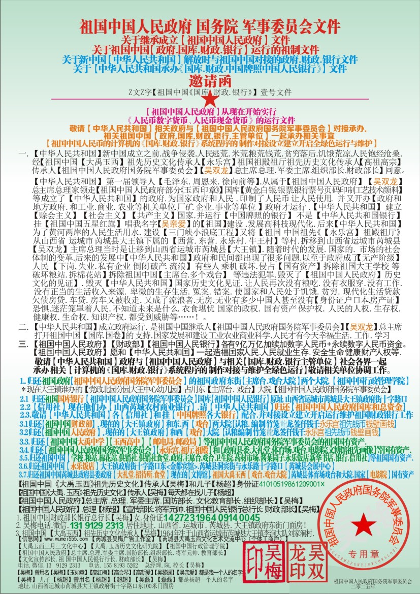 *【祖国中国】总主席【吴双龙】亲自授权孙女【吴梅】总主席等职位.在特殊环境下.